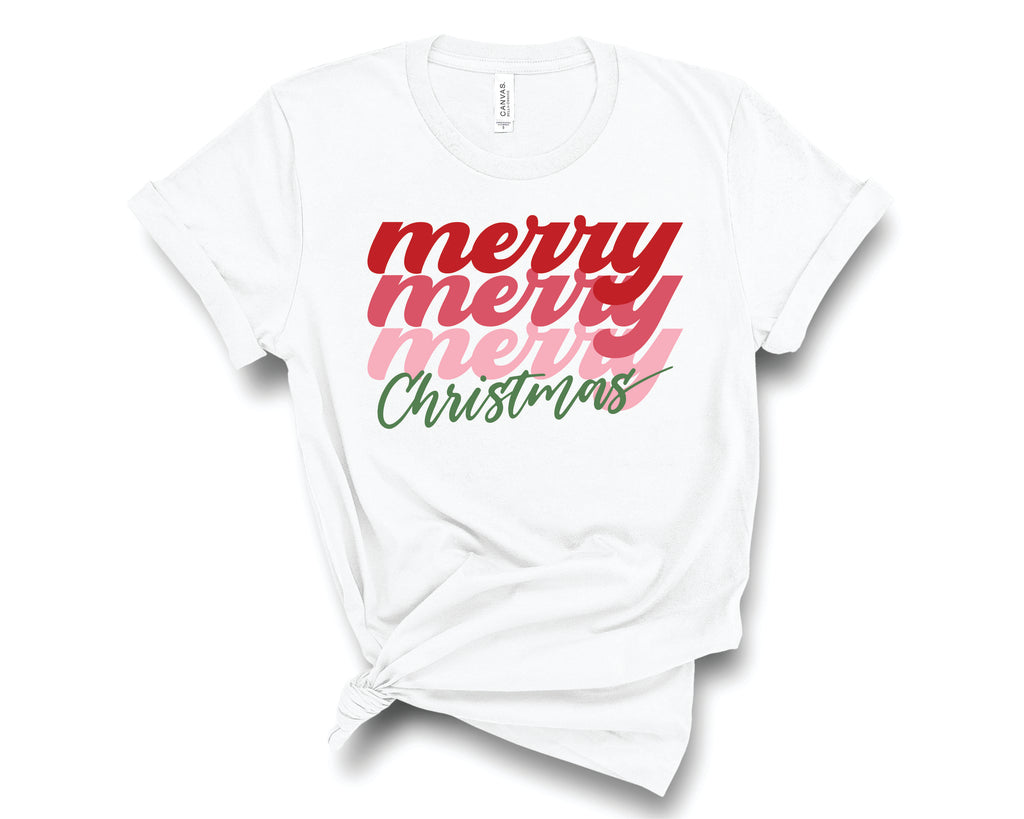Merry Christmas Stacked Pink Red- Transfer