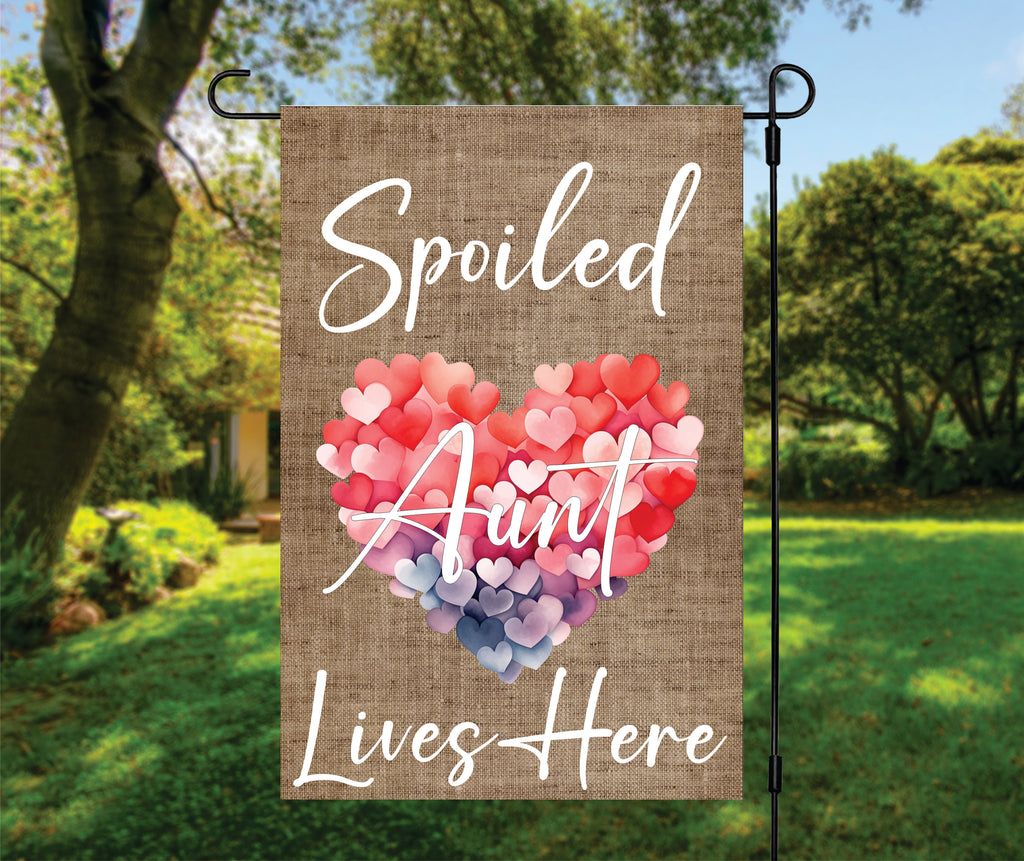 Burlap Spoiled Aunt Lives Here Garden Flag