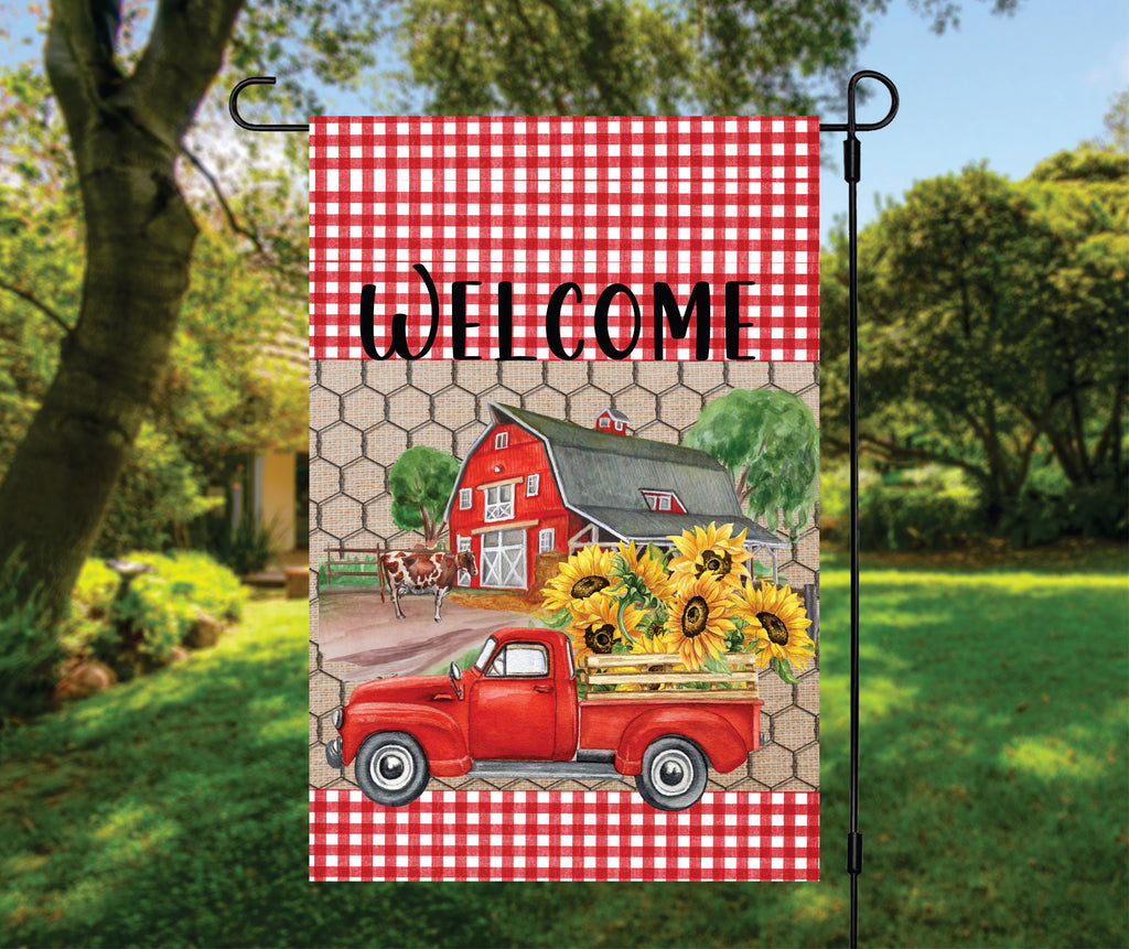 Welcome Sunflower Plaid Garden Flag