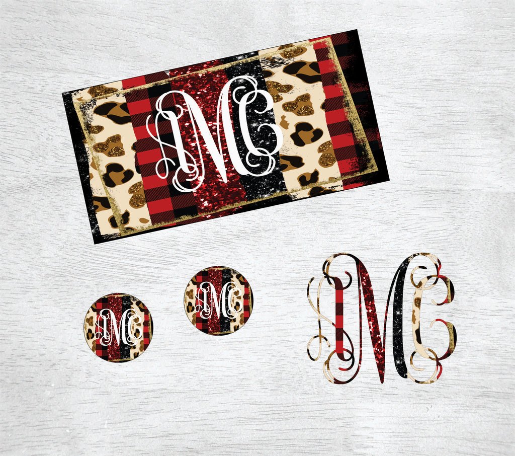 Leopard/ Buffalo Plaid Glitter Car Kit