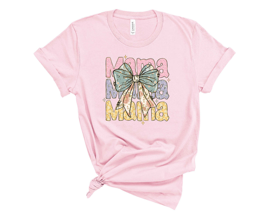 Stacked Floral Pastel Mama with Bow - Transfer