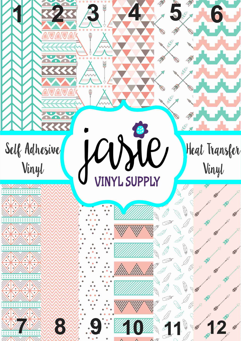 Tribal Pink Brown & Teal Printed Vinyl