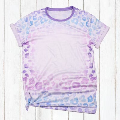 Polyester Bleach T-Shirt - Pastel Purple Leopard
