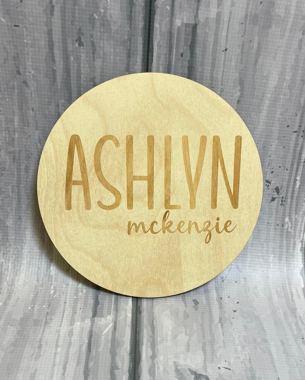 Round Wooden Baby PlaqueThis adorable Round Wooden Baby Plaque photo prop is the perfect way to introduce your new baby to the world as well as the perfect decoration or keepsake.